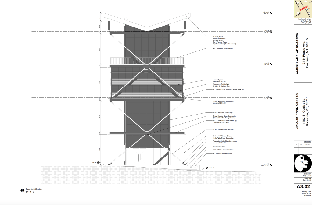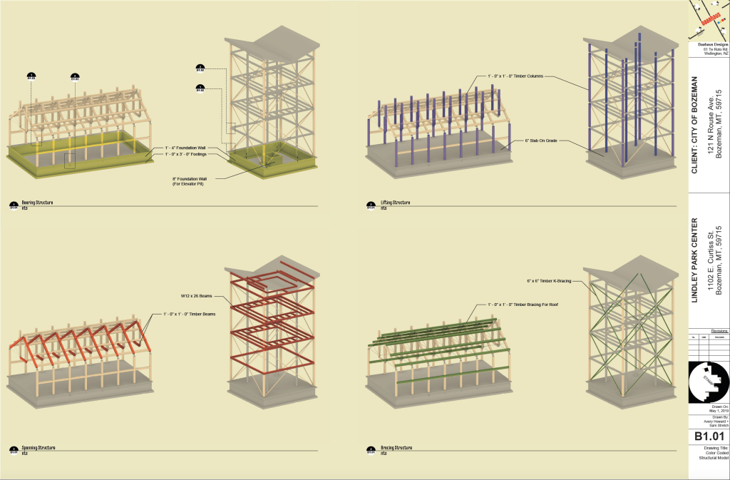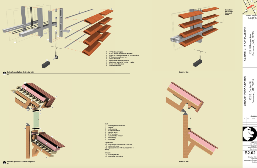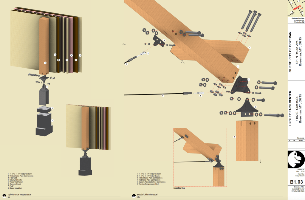 The purpose of this project was to create a mock firm name, and design various systems for a small observation tower and community centre and create construction documents for the project. I explored many structural precedents before designing custom steel knifeplate joints that smoothly blended the steel and timber into a cohesive system. The tower utilizes a passive solar heating system via operable louvers.